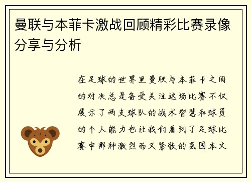 在近期的足球赛事中,绿城与容大的对决再次引发了球迷的热烈讨论。这场比赛不仅仅是一场普通的联赛对抗,更是两队历史交锋的一次精彩延续。双方在赛场上展现出的技战术水平、球员个人的表现,以及赛后的反响,都成为了球迷们津津乐道的话题。本文将从四个方面详细分析这场激战,包括比赛过程中的精彩瞬间、双方球队的表现与策略、球迷反应及其影响力,以及未来展望与启示。通过深入探讨这些方面,我们能够更全面地理解此次对决的重...